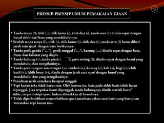 Tanda garis miring Ejaan adalah tata bahasa dalam Bahasa Indonesia yang mengatur penggunaan bahasa Indonesia dalam tulisan. Halaman ini merupakan pedoman di Wikipedia bahasa Indonesia. Titik dua dan lain lain.